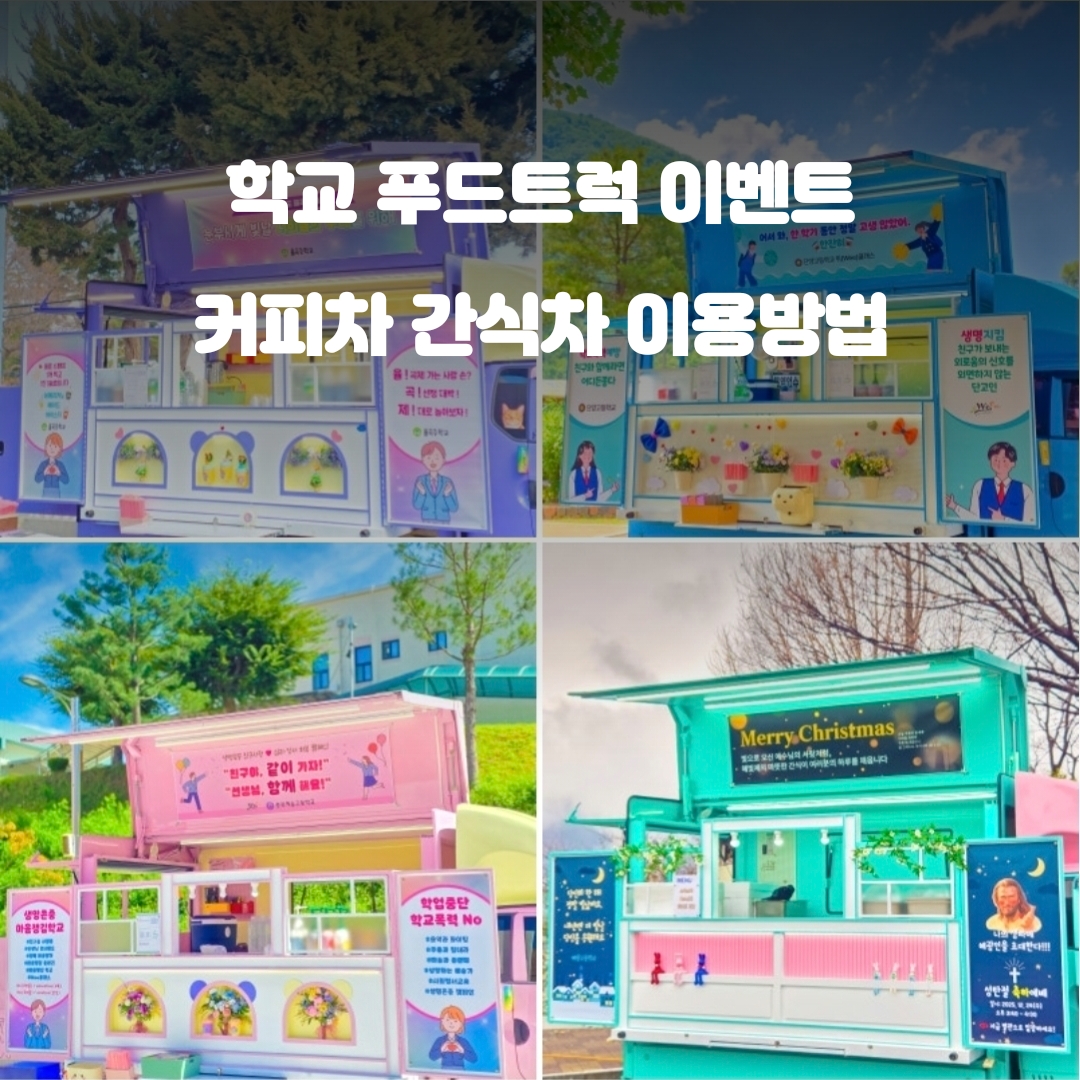 #학교간식차 #학교간식 #학교 간식차 학교 간식차 학교에서 진행하는간식차 이벤트의 종류와 이용방법 비용등을쉽게 알아볼수 있도록 정리 해보려고 합니다~ 겨울방학이 끝을 향해 달려가고 있네요선생님들도 학생들도 즐거운 휴식을마무리하고 학교로 돌아올 시즌이 됐어요 3월 시즌부터는초등학교.중학교.고등학교.대학교 까지크고 작은 이벤트 들이 시작되고 있기에저희 학교 간식차 들도빠르게 …